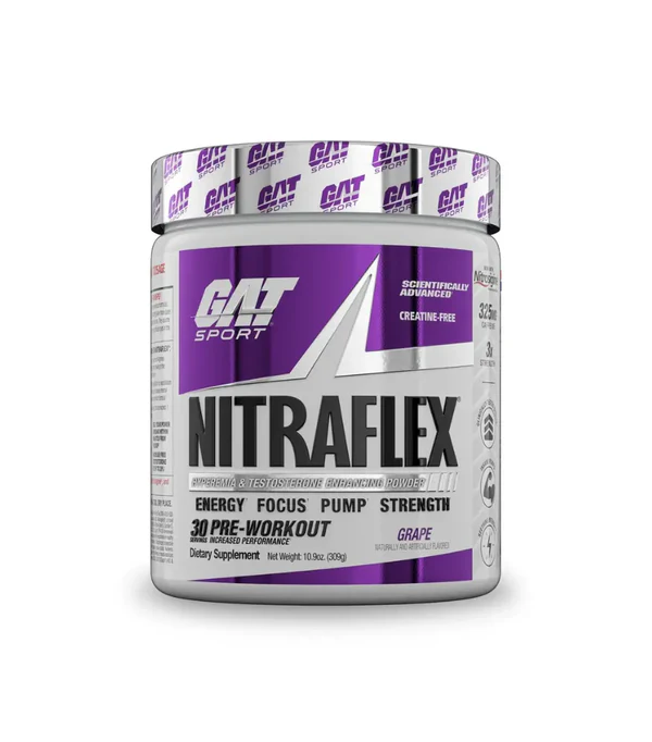 GAT Sport Nitraflex is a high-potency pre-workout designed for athletes and fitness enthusiasts who are looking to increase their workout performance and take their training to the next level. Formulated with a powerful blend of ingredients, Nitraflex delivers explosive energy, heightened focus, and improved endurance. Whether you’re lifting heavy, performing high-intensity cardio, or pushing through a tough training session, Nitraflex helps you break through plateaus and reach your fitness goals faster.